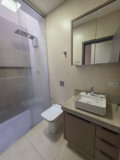 • Banheiro social com armários planejados e box;