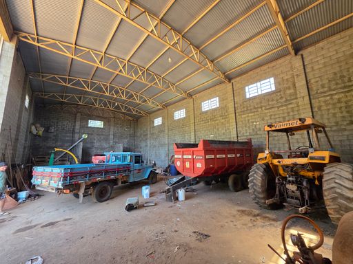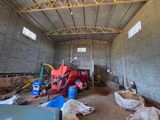 Barracão 02 com aproximadamente 420 m², com pé-direito alto, ideal para entrada e basculamento de caminhões.